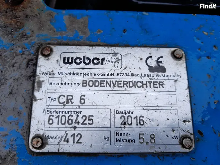 Konkurssipesä myy Weber CR6 maantiivistäjän. Vm. 2016 ja mittarissa 386 käyttötuntia. Hp. 1300€, tai sopiva tarjous. Kone Vaasassa, myyjä Pietarsaaressa. Soita 040 702 87 24.