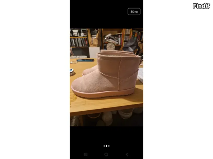 Säljer ett par ljusrosa boots i mocka med platt sula och rund tå. Skorna har kort skaft och mjukt foder på insidan, perfekta för kalla dagar. Snygg enkel design med sömmar som detalj och dragflik bak för enkel påtagning.st 36