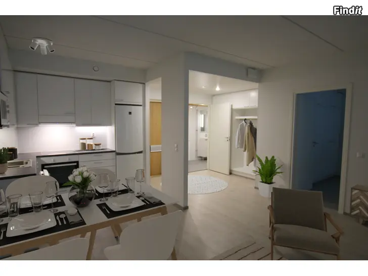 Valoisa, vuoden 2019 lopussa valmistunut kaksio vanhan meijerin korttelissa. Tässä kokoaan suuremmassa kaksiossa on sauna, lasitettu parveke, astianpesukone, valmius mikrolle ja pyykinpesukoneelle, laminaattilattiat ja vesikiertoinen lattialämmitys.