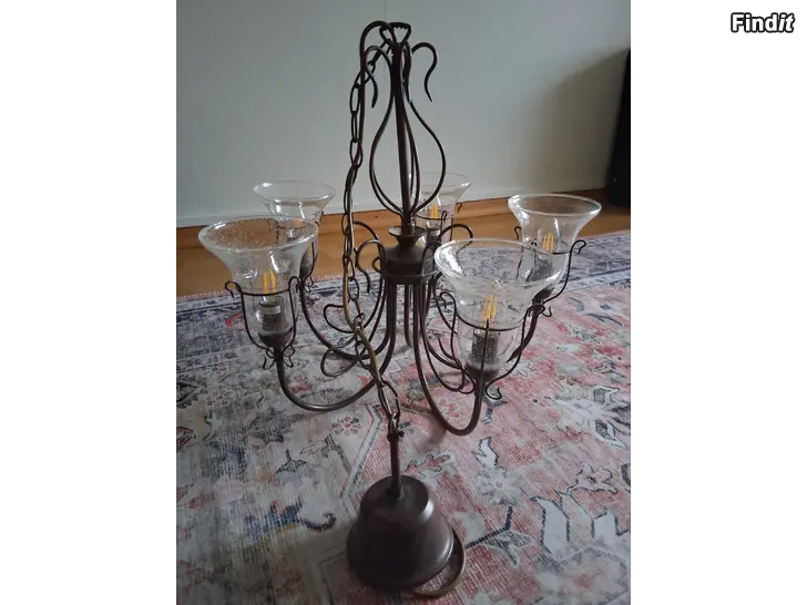 Painava, kaunis, hyväkuntoinen, rustiikkistyylinen kattokruunu 30 e polttimot eivät sisälly hintaan. Polttimot mukaan, niin 36 e. Ei sopinutkaan omaan asuntoon. Kytkentä sokeripalalla. Valaisimesta puuttuu koukku se pitää hankkia Myynnissä myös muualla. Nouto Hietalahdesta.