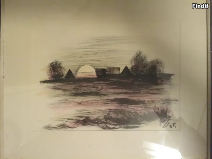 Ilmeisesti ruotslaainen akvarelli/tussi työ 60-luvulta, kooltaan 41*34