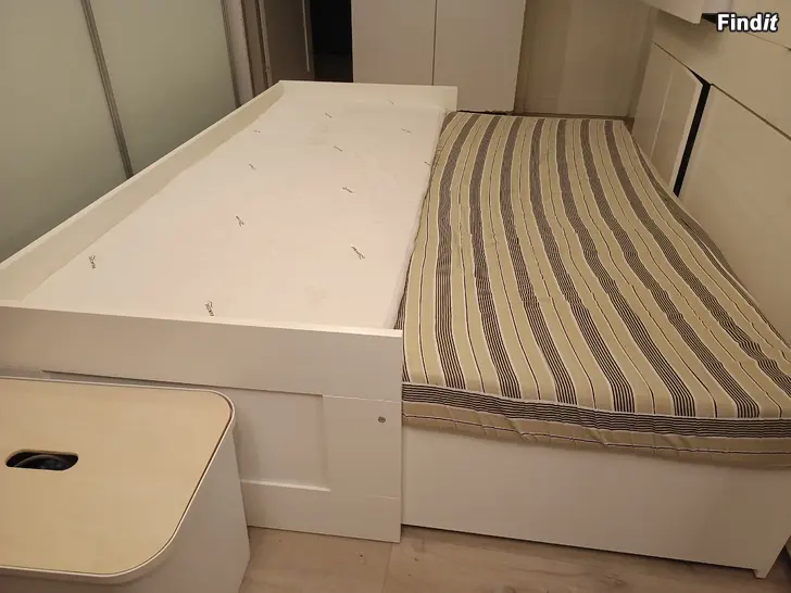 Det Finns två stora förvarings lådor och man kan bädda ut sängen ochså man får med 2 bedmadrasser priset kan diskuteras