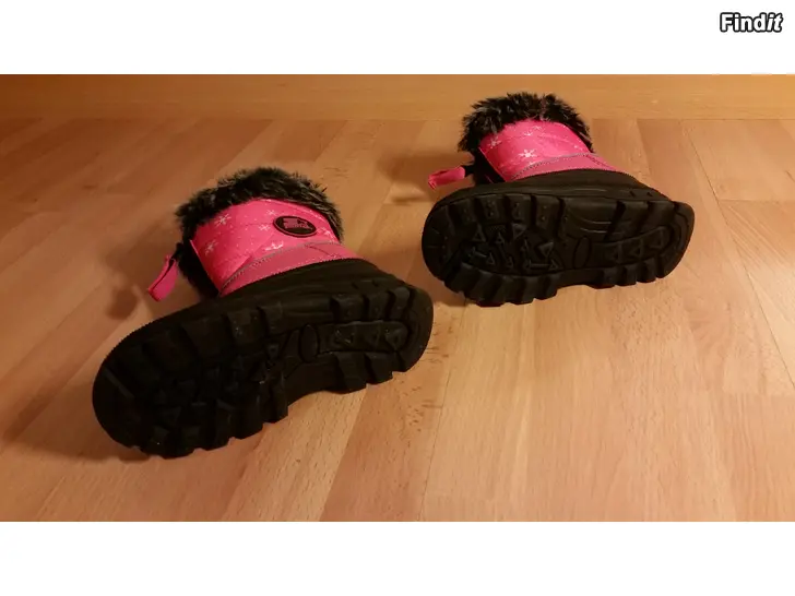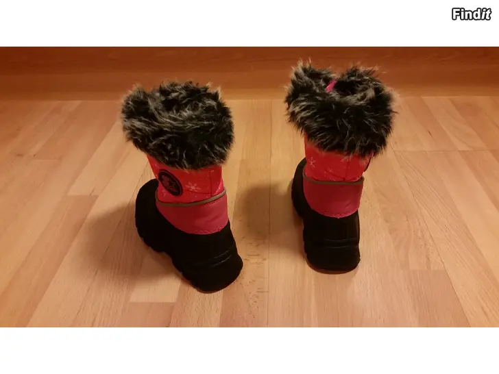 Lasten korkeavartisissa talvikengissä on vettähylkivä päällinen. Vedenpitävä kumipohja on kuvioitu voimakkaasti. Edessä on helppokäyttöinen vetoketjukiinnitys. Yläreunaa somistaa muhkea tekoturkisreunus. Fleecevuori lämmittää mukavasti jalkoja.