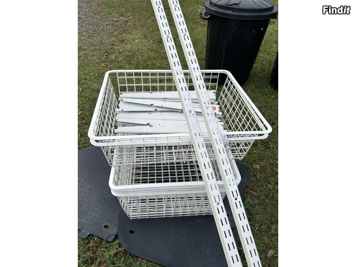 Lähes kokonainen säilytysjärjestelmä edullisesti, ainoastaan Wall-U liukukiskot koreille uupuu: https://www.puuilo.fi/pisla-wall-u-liukukisko-korille-530x450mm-teras-valkoinen