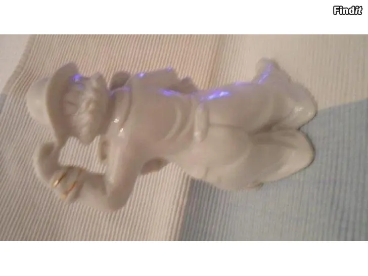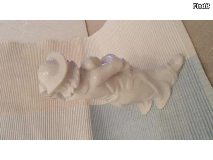 Vanha posliini figuuri n 1950-60-luvulta, korkeus n.14 cm. Pohjassa painettuna jotain, mutta en saa selvää. Ikää en tiedä tarkemmin, perintötavaraa.
