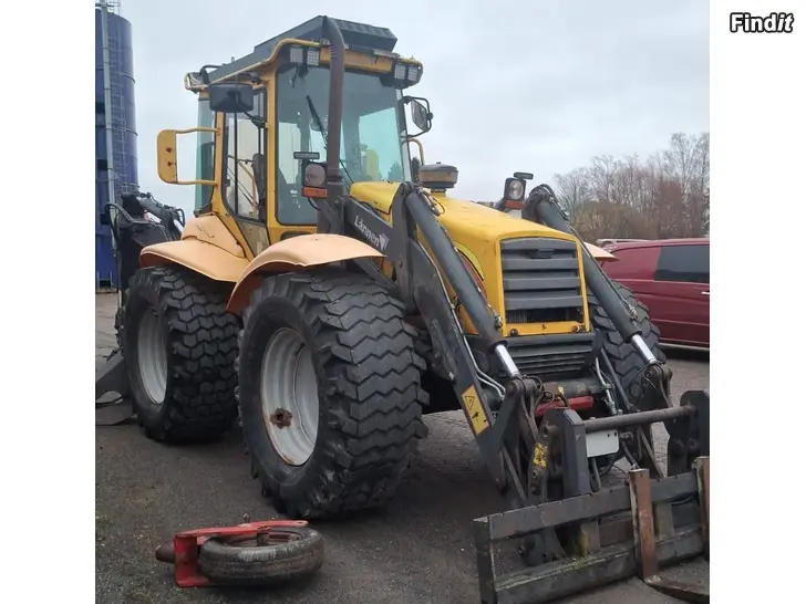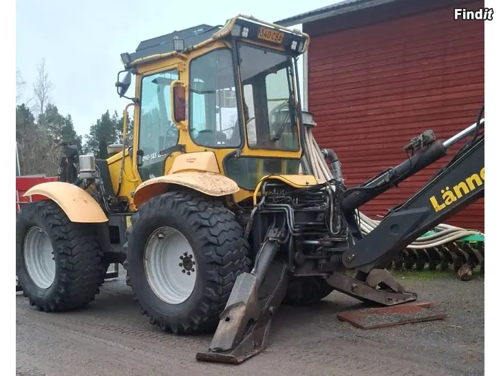 Käytetty työkuntoinen Lännen traktorikaivuri hyvällä etukuormaajalla.