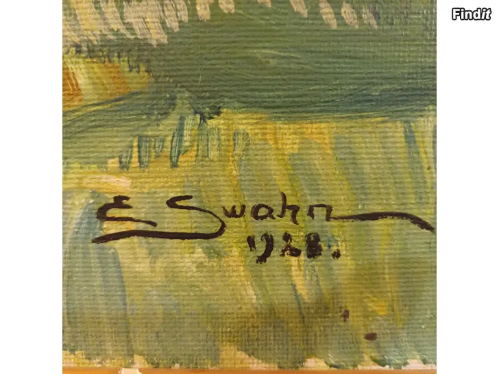 Lähes sata vuotta vanha taulu. Mitat 49x40 cm. Signeeraus E. Swan 1928.