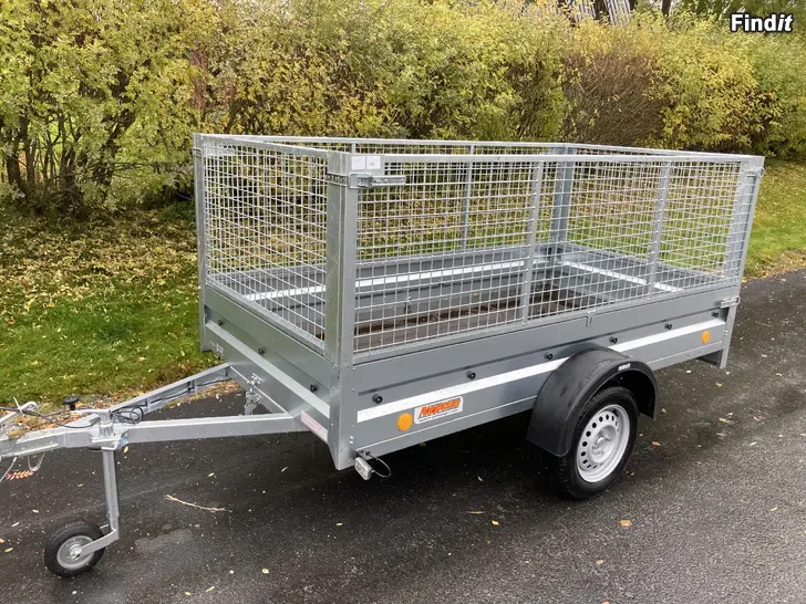 Obromsad släpvagn Neptun Praktik Totalvikt: 750kg Lastvikt: 610kg Flakmått invändigt 253 x 129 x 30cm Bromsad: Nej Tipp: Ja Lastöglor: 4 Stödhjul: Ja Grindar: 700 mm Stora hjul