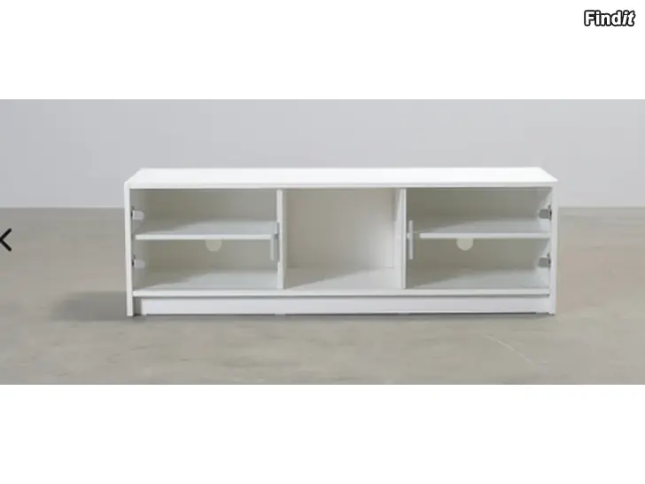 - Tv bänk med hyllor och glasdörrarVit