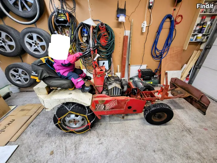 Minkomatic diesel automat i bruksskick till salu utrustad med dragkrok, vinsch, schaktblad, snökedjor och LED belysning.