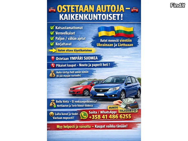 - Bilar i alla skick köpes/kaikenkuntoiset autot ostetaan