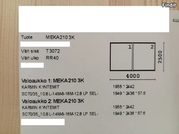 - Glasvägg KLAS1-121, MEKA 210, 4000x2500, Sk/Grå, 3K LAM/6/LAM