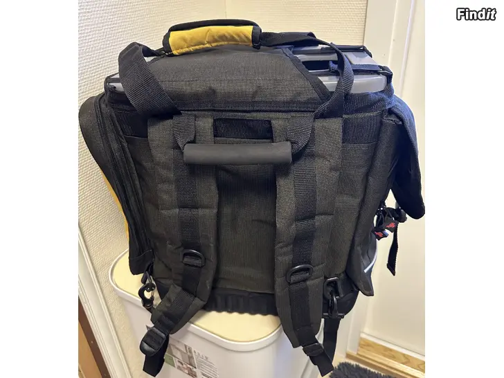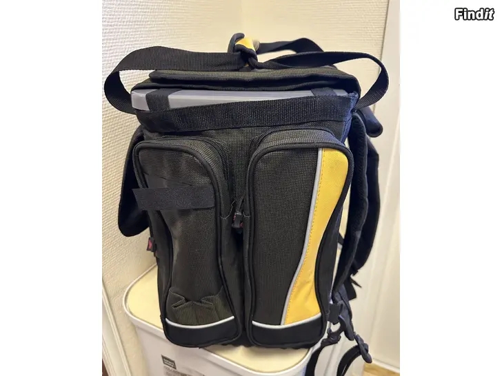 Säljes en mycket rymlig pimpellåda som man kan sitta på. Kan bäras som ryggsäck eller i bärhandtag. I bra skick.