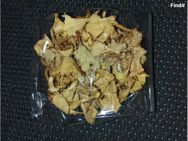 Kuivatut kantarellit 5e/50g. Postikulut tarvittaessa 6e s-kokoisessa paketissa , jossa tilaa isommallekin määrälle.