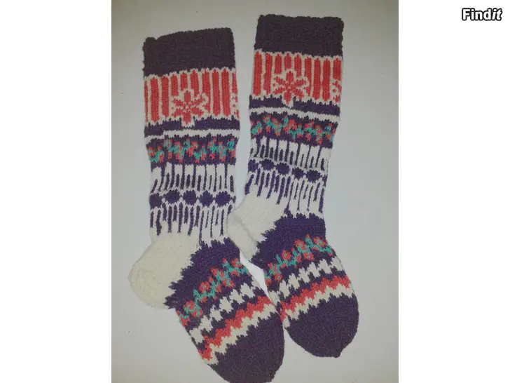 Käsinneulotut villasukat 7 veljestä langasta. Varren mitta 34 cm ja jalkaterä 25 cm. Postikulut tarvittaessa 6e Postin S-kokoisessa paketissa manner-Suomen alueella. Samaan pakettiin mahtuu hyvin muutakin.