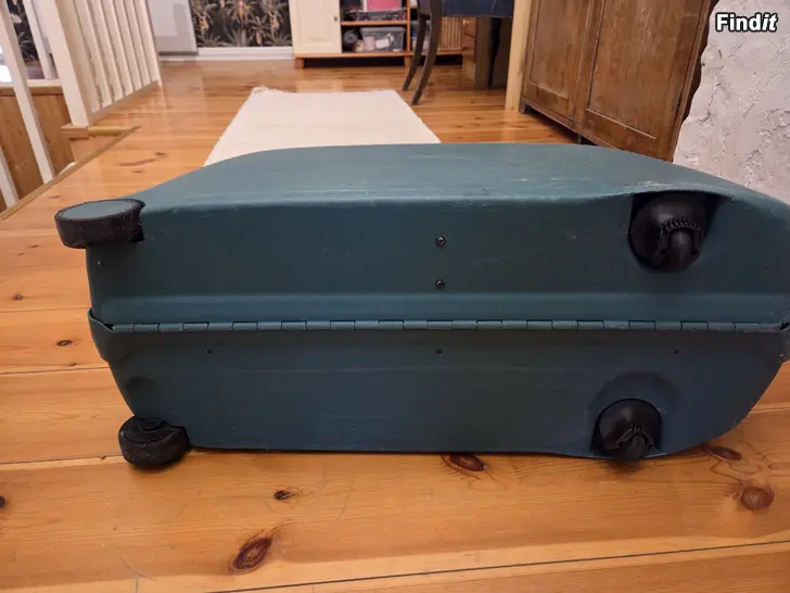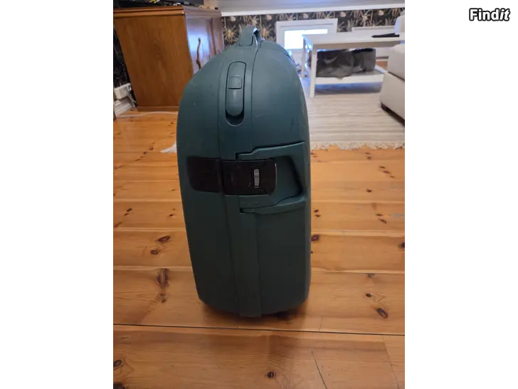 Samsonite matkalaukku, valmistettu muovista, unisex-malli. Laukussa on 4 pyörää, vetokahva ja vetonaru. Siistikuntoinen. Numerokoodilukko. Vihreä.