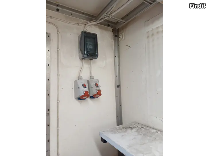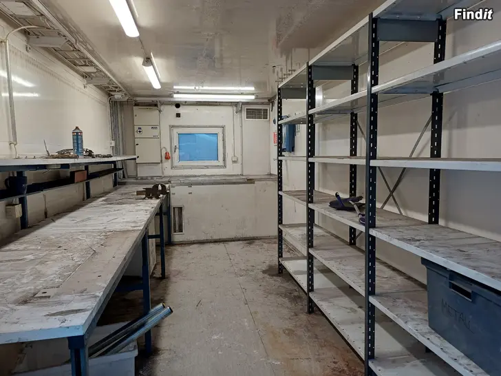 Isolerad verkstadskont, hylla och arbetsbänk medföljer. Ej lås.